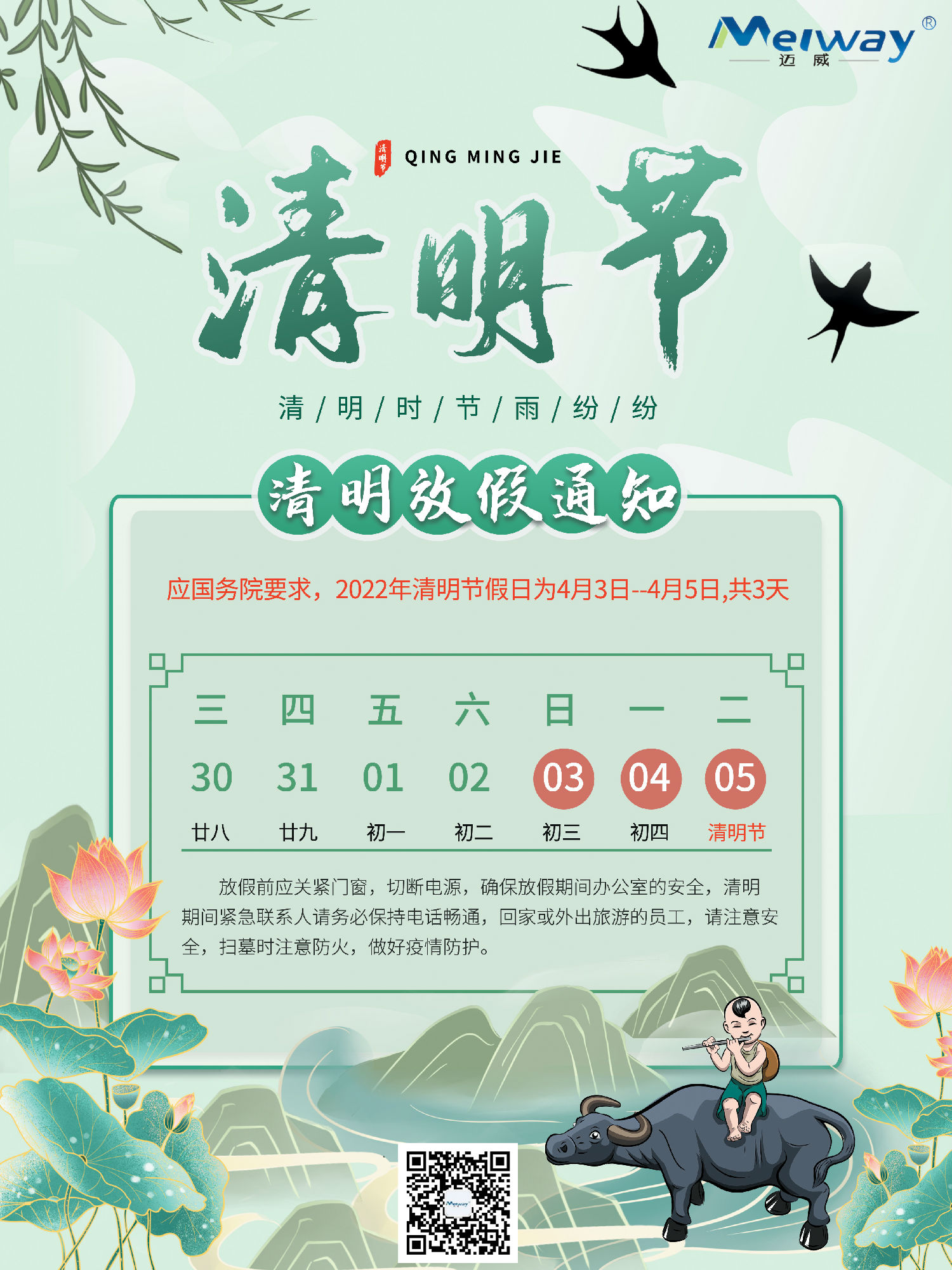 2022年清明節將至,根據國家法定假期規定,并結合公司實際情況,現公司對清明節放假做出以下安排,請各位員工參照執行,具體如下:
